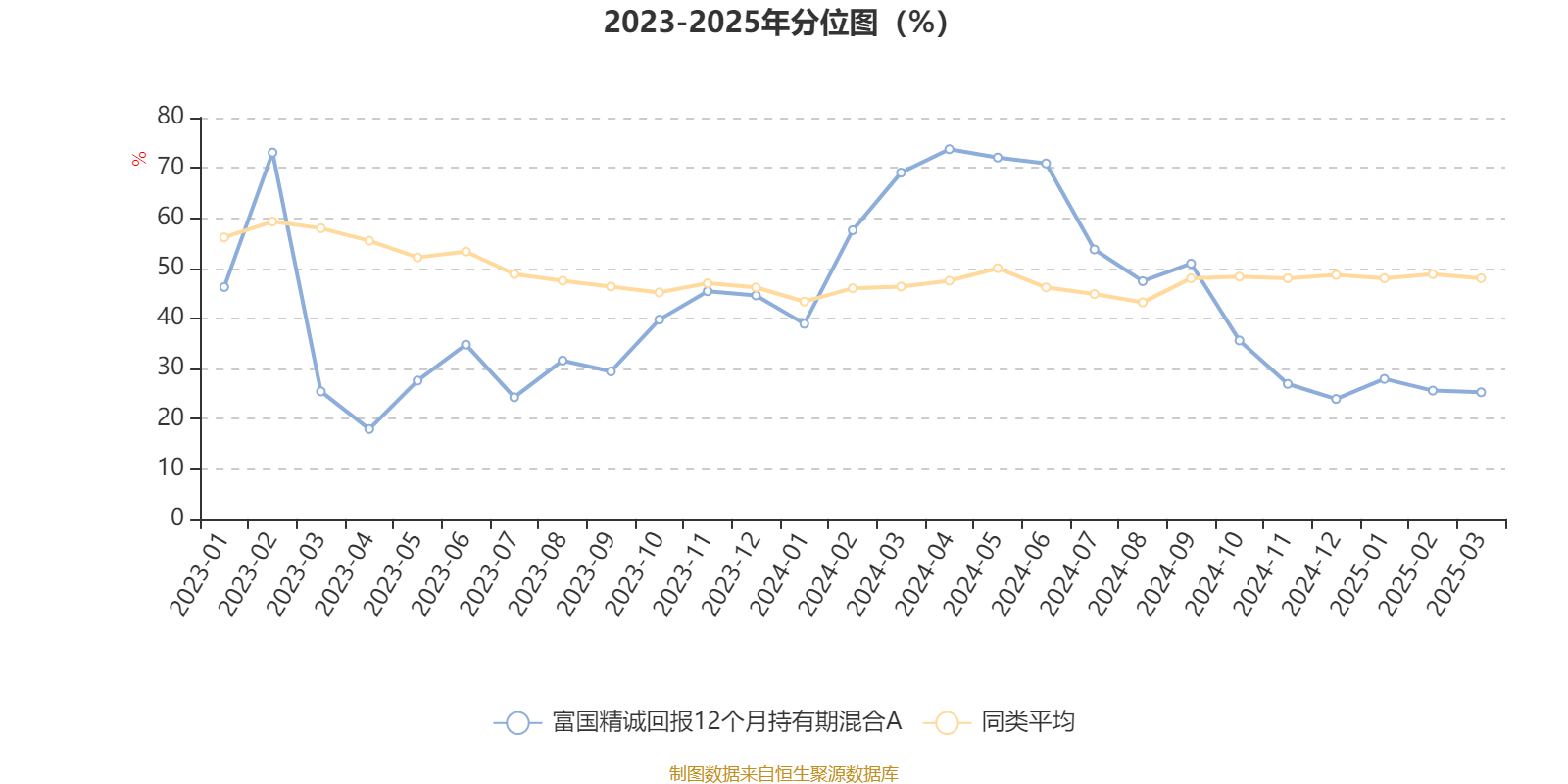 通过所选区间该基金净值增长率分位图,可以观察该基金与同类基金业绩比较情况。图为坐标原点到区间内某时点的净值增长率在同类基金中的分位数。