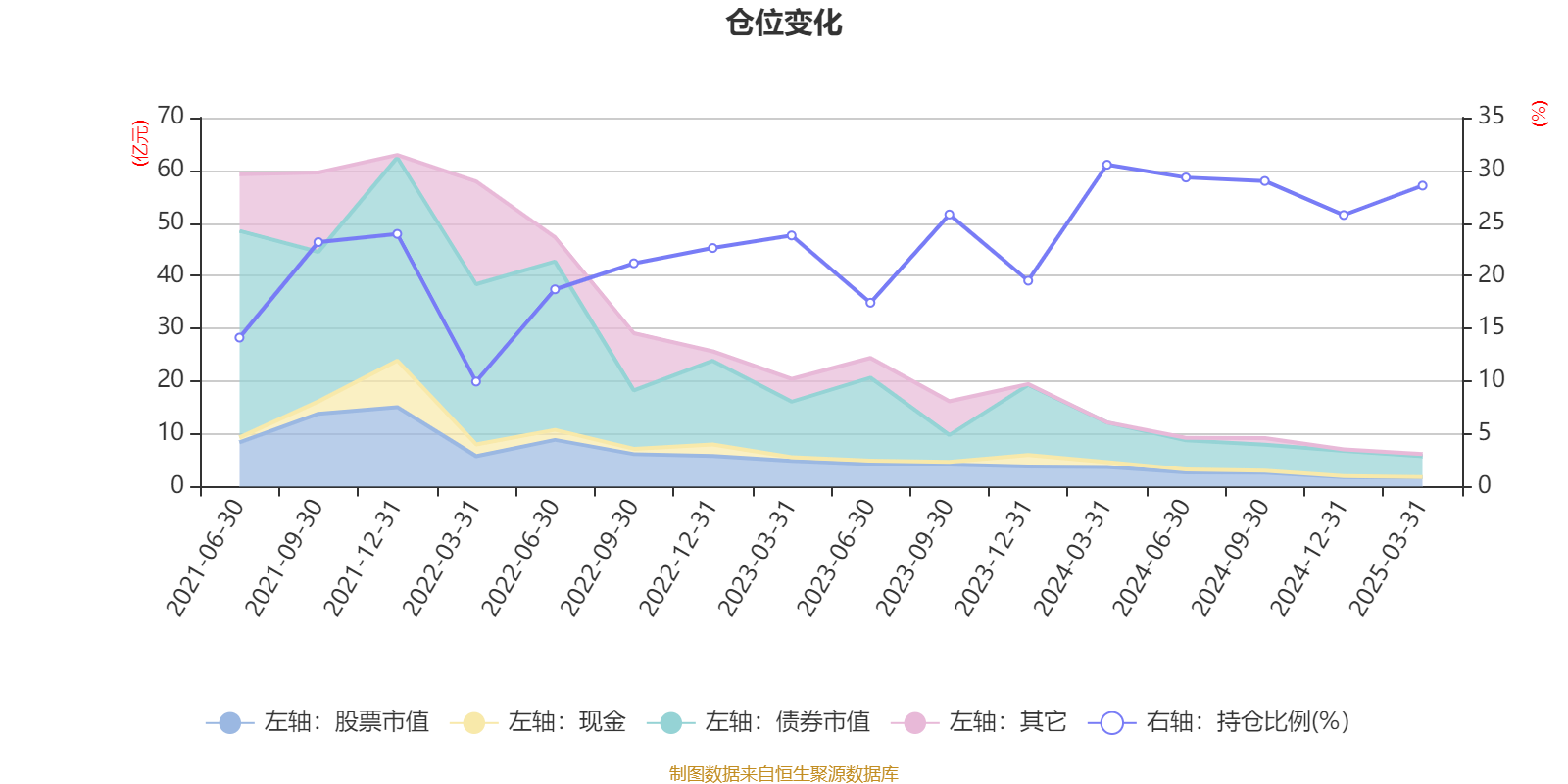 据定期报告数据统计,近三年平均股票仓位为24.36%,同类平均为18.87%。2024年一季度末基金达到30.53%的最高仓位,2022年一季度末最低,为9.96%。