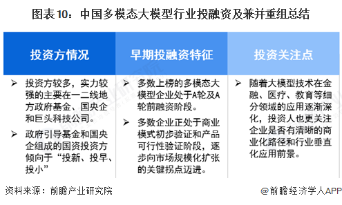 中国多模态大模型行业投融资特征来看,行业处于快速上升期,项目收入较高,吸引了众多投资方。而实力较强的投资方集中在一二线地方政府和国央企,例如中关村投资集团等。目前主要是早期投融资,此外投资关注点在项目是否有清晰的商业化路径和行业垂直化应用前景,能否将技术与具体场景相结合,提供高效、低延迟服务。