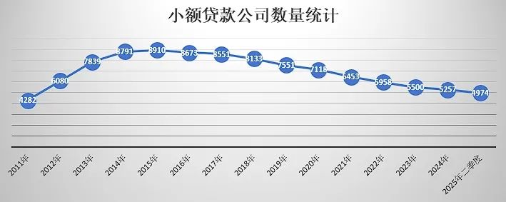 小额贷款公司数量在2015年达到顶峰后开始回落,第一财经统计,从2015年二季度到2025年二季度这十年间,小额贷款公司数量减少了3977家,降幅44.4%;贷款余额减少2233亿元,降幅23.3%;从业人员减少72070人,降幅63.2%。