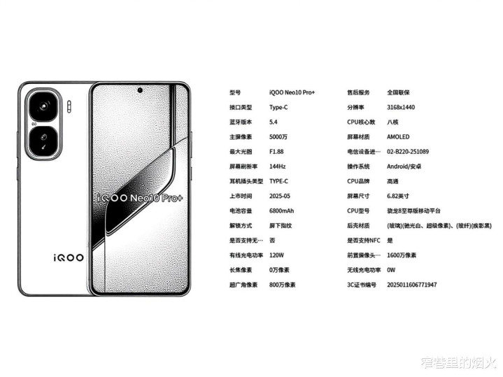 6150mAh+120W快充,续航仅次于Neo10Pro+,金属中框+玻璃后盖,IP68、IP69防水(抗水压防尘三50MP镜头、主摄超广角长焦支持多焦段拍摄)