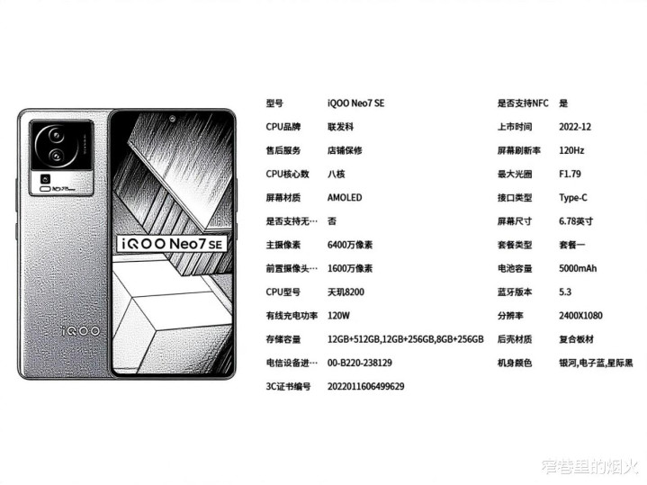 天玑8200(90万跑分),日常流畅,中负载游戏无压力,三星E5柔性直屏,120Hz刷新率,但无类DC调光,低光下频闪敏感者慎选,5000mAh+120W快充,续航强回血快同价位少见,全塑料机身(中框后盖耐摔性一般,无防水认证,64MP主摄+OIS夜景纯净度尚可,副摄2MP景深+2MP微距)凑数