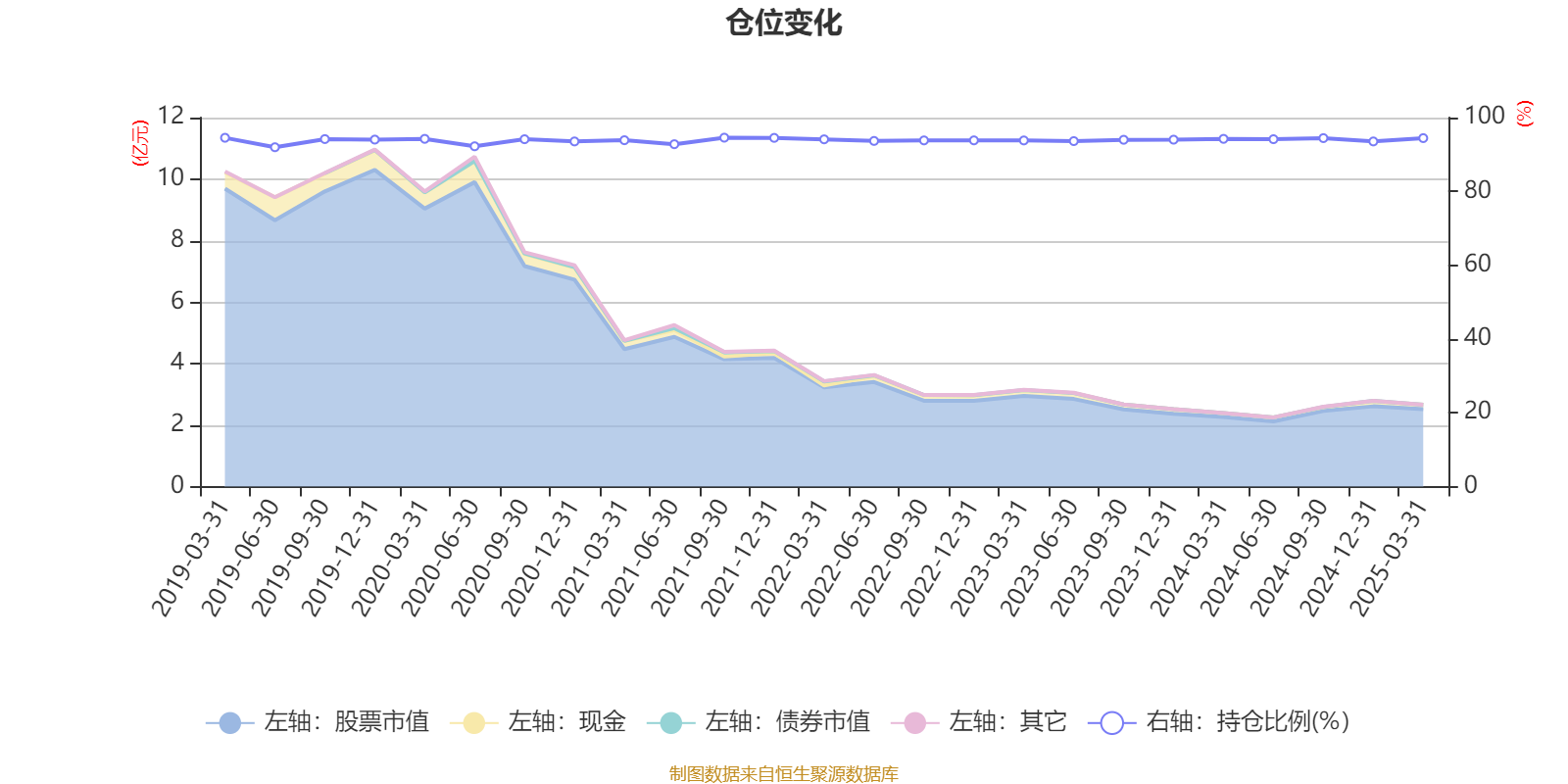 据定期报告数据统计,基金股票仓位长期保持较高水平,近三年平均股票仓位为93.97%,同类平均为88.14%。2021年三季度末基金达到94.56%的最高仓位,2019年上半年末最低,为91.97%。