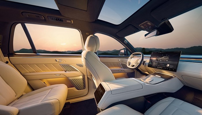 座舱取消传统仪表盘,标配17.2英寸3K中控屏、35英寸AR-HUD及高通骁龙8295P芯片。6座版车型三排座椅均支持电动调节,前两排标配通风/加热/按摩,第二排设零重力座椅。后舱配备17.3英寸吸顶屏、车载冰箱及折叠桌板。便利性配置涵盖双温区空调、23扬声器音响系统及9安全气囊,前备厢容积达240升。